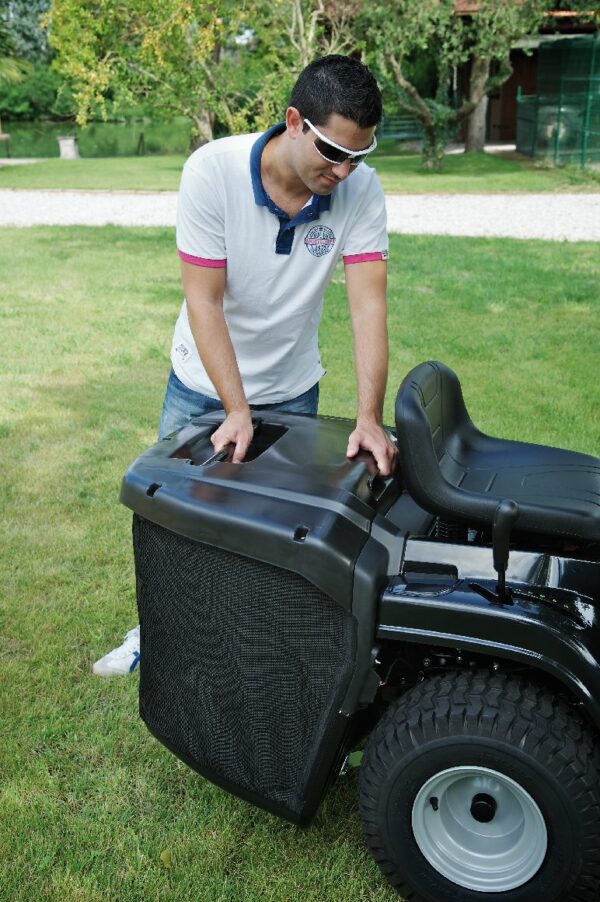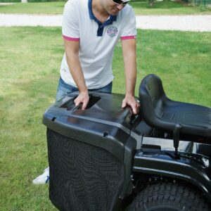 Die serienmäßig im Lieferumfang enthaltene robuste Stoßstange schützt verlässlich die Motorhaube des Rasentraktors