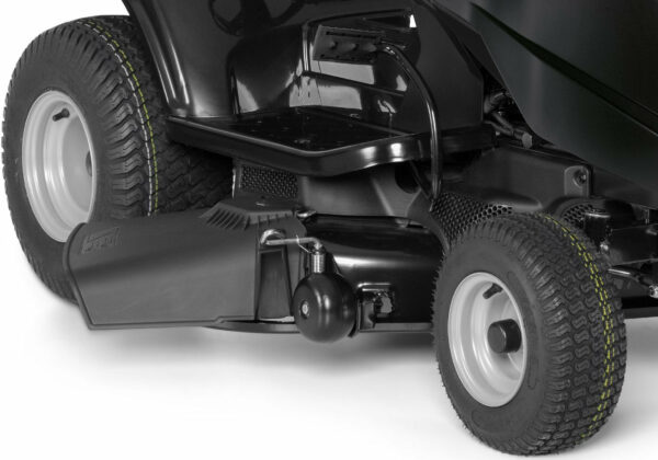 Die serienmäßig im Lieferumfang enthaltene robuste Stoßstange schützt verlässlich die Motorhaube des Rasentraktors