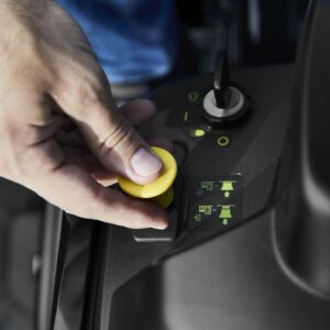 Das Mähwerk lässt sich ganz einfach elektromagnetisch per Knopfbedienung einschalten.