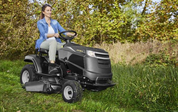 Große Flächen, die nicht als Zierrasen dienen, daher eher unregelmäßig gemäht werden und wo der Rasen höher steht, lassen sich mit dem Alpina AT3 98 A schnell und effizient mähen. Die Entsorgung des Schnittguts entfällt und auch die nicht mehr notwendigen Entleerungsfahrten sparen erheblich Zeit ein.