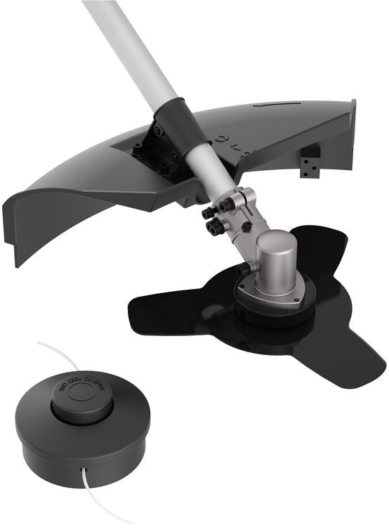 Im Lieferumfang enthalten: Motoreinheit, Freischneideraufsatz (Schnittbreite 255mm), Trimmeraufsatz (Schnittbreite 430mm, inkl. Tippautomatik), Heckenscherenaufsatz (180° neigbar, Schnittlänge 435mm) und Astkettensägenaufsatz (Schnittlänge 300mm, mir Oregon Schwert und Kette), Verlängerung, Mischbehälter und Tragegurt.