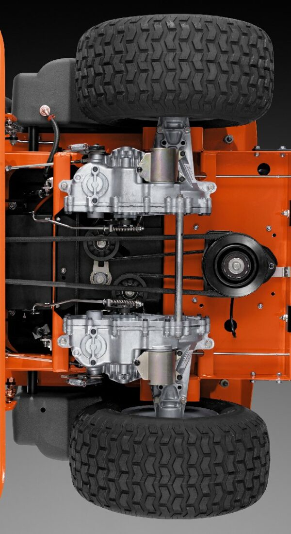Hydrostat-Getriebe ermöglicht Geschwindigkeitsveränderung sowie Wechsel zwischen vorwärts und rückwärts fahren ohne schalten oder kuppeln zu müssen
