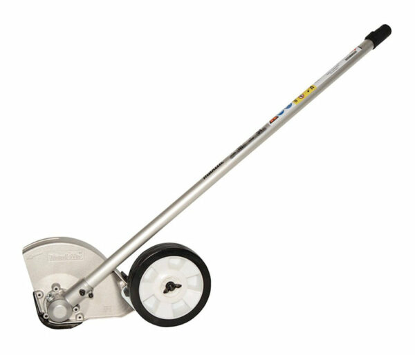 Ein besonders robuster und leicht zu führender Rasenkantenschneider. Mit einer Metallschutzhaube und Einrad-Führungshilfe. Inklusive einem Metallmesser mit 203 mm Durchmesser.