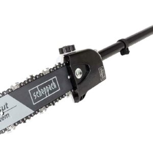 Für die Baumpflege ist der Hochentaster mit 10″ ProCut-Schwert und -Kette die richtige Wahl. Die automatische Kettenschmierung sorgt für reibungslose Arbeitsabläufe beim Entasten. Mit einer Gesamtlänge von 2100 mm, davon 254 mm Schnittlänge, lassen sich Äste und Zweige bequem vom Boden aus entfernen.