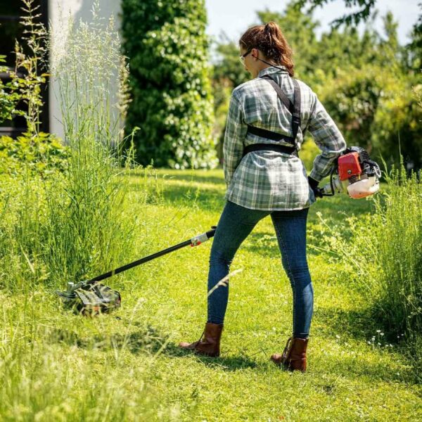 Mit der Motorsense lassen sich kleinere Flächen schnell und unkompliziert von Brennnesseln und Unkraut befreien. Mit den drei Messern des Freischneiders verfügt dieser über eine maximale Schnittbreite von 255 mm.
