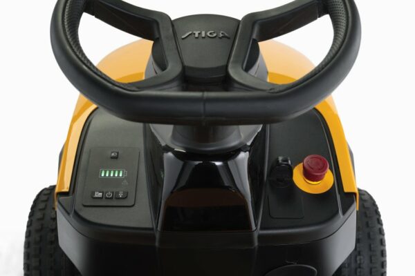 Dank dem 48-V-Akku mit 30 Ah bietet der Estate 384e den Komfort eines Akku-Mähers mit der Leistung eines Benzin-Rasentraktors. Da der Akku so leistungsstark ist und eine so lange Laufzeit aufweist, kannst du mit einer Akkuladung in bis zu 45 Minuten bis zu 3000 m² mähen.
