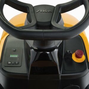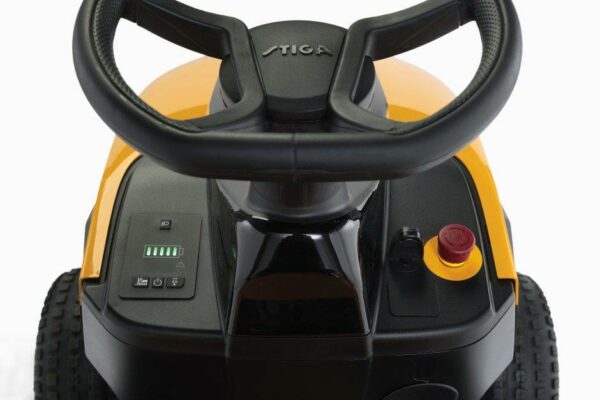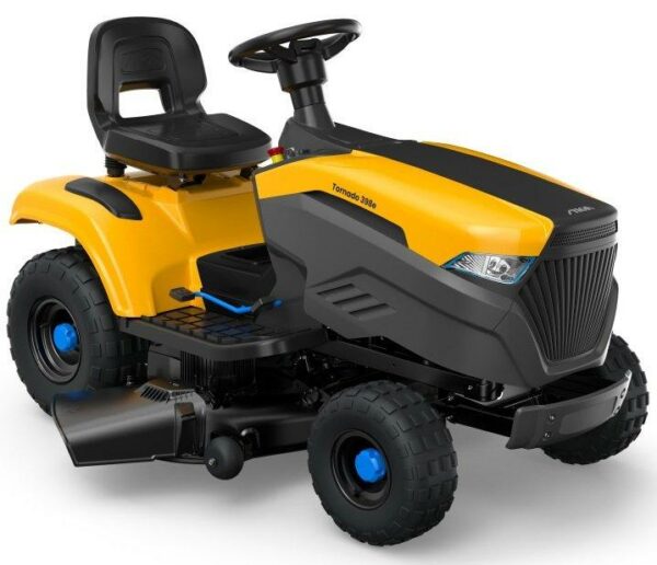 Der 48-V-Akku mit 30 Ah des Tornado 398e bietet dir das Beste aus allen Systemen: die Leistungsstärke eines Benzinrasentraktors – aber ohne den üblichen Schadstoffausstoß und Lärm. Die hohe Leistung und lange Laufzeit das Akkus ermöglicht Fahrten von bis zu 45 Minuten. Ein benutzerfreundliches Armaturenbrett ist mit Akkustandanzeige und Schnellstarttaste ausgestattet. Mit dem 1,2-kW-Transaxle-Motor erreichst du Geschwindigkeiten von bis zu 9 km/h, während zwei Messermotoren insgesamt 3 kW ohne Riemen, Riemenscheiben und aufwendige Instandhaltung erreichen. Dank der großzügigen Schnittbreite von 98 cm und den 7 zwischen 25 mm und 80 mm einstellbaren Schnitthöhen ist jeder Mähdurchgang eine wahre Freude.