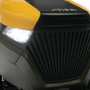 Die serienmäßig im Lieferumfang enthaltene robuste Stoßstange schützt verlässlich die Motorhaube des Rasentraktors