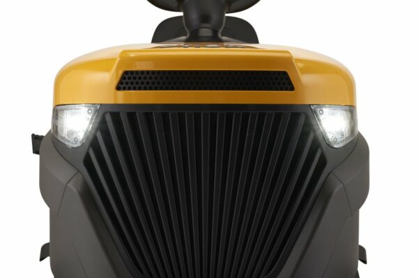 Zu den absoluten Komfortmerkmalen zählen die leistungsstarken und doch energieeffizienten LED-Scheinwerfer, die sicheres Mähen selbst bei wenig Licht ermöglichen, das höher angesetzte Lenkrad für beste Benutzerfreundlichkeit und die mühelose Elektromagnetkupplung für die Messer. Mulchkit, Zugöse und Akku-Ladegerät separat erhältlich.