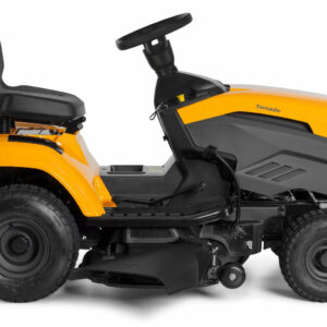 Wendig, robust, zuverlässig. Mit den sehr griffigen aber dennoch rasenschonenden Antriebsrädern bewältigt der STIGA Tornado 5108 problemlos bis zu 6.000 m² Fläche. Der STIGA-Einzylindermotor mit 452 cm³ Hubraum ist sicher in einem Gusseisengehäuse verbaut und im Kraftstofftank passen bis zu sechs Liter Benzin. Und das OHV-Design (hängendes Ventil) senkt sowohl die Kraftstoffkosten als auch die Emissionen. Das 108 cm breite Mähdeck mit elektromagnetischem Messer führt das Mähgut nach oben und zur Seite aus. Einfach eine der sieben Schnitthöhen zwischen 25 und 80 mm auswählen und dann losmähen – auf dem STIGA-Classic-Sitz – unserem neuestes Ergänzungsmerkmal zum ergonomisch gestalteten Lenkrad. Um den Rasen mit nährstoffreichem organischen Dünger zu versorgen, sind optional ein Mulchkit, eine praktische Zugöse und ein Batterieladegerät erhältlich. Die gusseiserne Vorderachse wurde für den harten täglichen Einsatz entwickelt. Und bei Sonnenuntergang kommen die LED-Scheinwerfer zum Tragen – sie ermöglichen selbst bei wenig Licht sicheres Arbeiten und bewahren Fahrer wie Rasentraktor vor Gefahren.