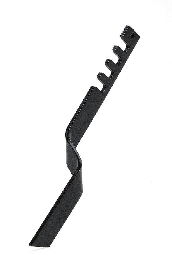 Zum Variieren der Arbeitstiefe. Der Hacksporn bremst die Vorwärtsbewegung bei der Bodenbearbeitung. Dadurch graben sich die Fräsmesser tiefer in den Boden. Der Anwender spart Kraft beim Gegenhalten der Maschine. Geeignet für Bodenfräse und Bodenkrümler.