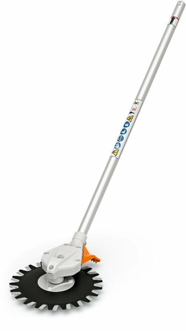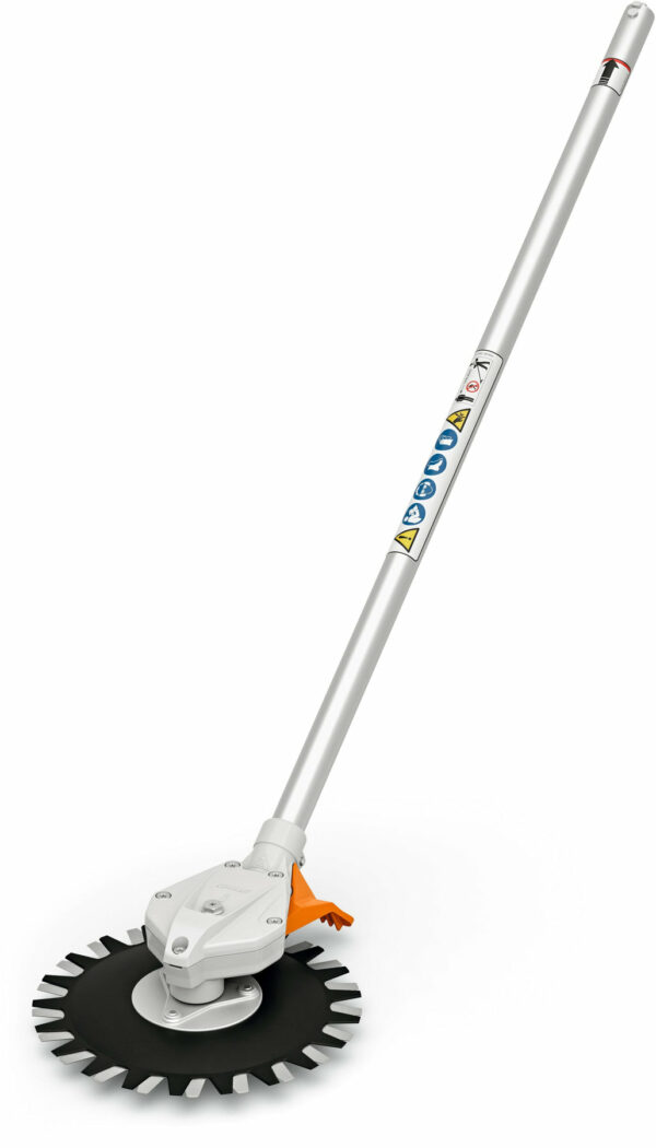 Ähnlich einer Unkrautbürste haben Landschaftsgärtner, Grünpfleger und Straßenmeistereien mit der Kreiselschere STIHL RG-KM ein effizientes Hilfsmittel, mit dem sie Unkraut und Gras auf Schotter, Asphalt- oder Pflasterflächen wirkungsvoll entfernen können.Die Kreiselschere RG-KM von STIHL ist für ein schleuderarmes Mähen konzipiert: Im Gegensatz zu rotierenden Mähfäden bewegen sich hier die Ober- und Untermesser der Kreiselschere um ca. 30° versetzt zueinander vor und zurück. Durch die geringe Rotationsenergie wirbeln Sie beim Mähen entlang von Straßen, Parkplätzen und Bordsteinkanten kaum Steine auf. Deshalb sind nur geringe Sicherheitsabstände einzuhalten, nämlich 3 m zu Gegenständen und Fahrzeugen bzw. 5 m zu Personen.Mit dem RG-KM als Unkrautentferner lässt sich die Unkrautbeseitigung effektiv und einfach durchführen. Möchten Sie das KombiWerkzeug im Einsatz sehen, so können Sie sich das Video zur Anwendung der STIHL RG-KM ansehen. Sie arbeiten darüber hinaus lange unterbrechungsfrei, denn das KombiWerkzeug weist nur eine geringe Neigung zur Verstopfung und Verwicklung mit Schnittgut auf. Wollen Sie also Unkraut bekämpfen, so haben Sie dafür mit der Kreiselschere ein komfortables und nachhaltig wirksames Gerät zur Hand.Die Kreiselschere RG-KM gehört zum STIHL KombiSystem. Verbinden Sie die Kreiselschere werkzeuglos und schnell mit dem kraftvollen STIHL KM 111 R oder mit folgenden weiteren KombiMotoren:KM 94 RC-EKM 131 RKMA 80 RKMA 120 RKMA 130 RKMA 135 R